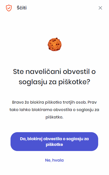 Brskalnik Brave blokira tudi pasice z obvestilom o piškotkih
